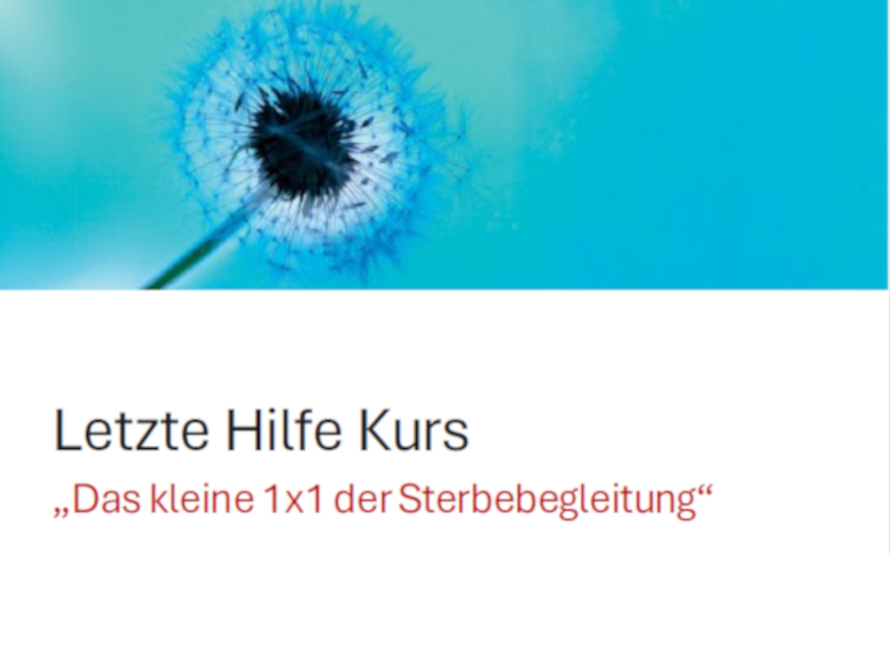 Letzte-Hilfe-Kurse geben leicht verständliches Basiswissen und praktische Tipps für die Begleitung am Lebensende – im Freundeskreis, in der Familie oder in der Nachbarschaft. Sterbebegleitung ist keine Wissenschaft, sondern gelebte Mitmenschlichkeit. Wir möchten ermutigen, sich Sterbenden zuzuwenden – denn Zuwendung ist das Wertvollste, was wir am Ende des Lebens geben können.